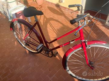 Vendo bicicletta ‘26 da passeggio per donna degli anni 70. La bici è stata tutta smontata e riverniciata ma presenta qualche graffio. Bici completa e marciante. Monta cambio Campagnolo extra sport e ruota libera Regina a 3 velocità.