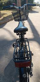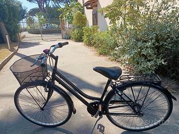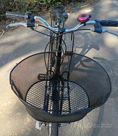 È una ottima bicicletta x donna /uomo completa di tutto gomme nuove freni perfetti, cestino anteriore, portapacchi posteriore,campanello cavalletto luci,e gomme con smontaggio facile da poter mettere in macchina. Faccio provare