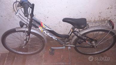 Vendo bicicletta usata marca X-Mann, con ruote da 26 pollici, in buone condizioni generali. Cambio a 6 velocità, telaio robusto e comodo, adatta per uso urbano o gite fuori porta.