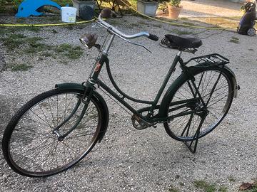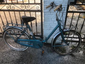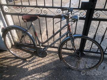 Sono tre biciclette credo anni 60-70 da restaurare ma per usarle basta cambiare le gomme… una Gisella (Graziella) pieghevole con ruote medie da 24’, una Legnano con ancora le manopole in corno (notare lo stemma !!!) una inglese particolare, marca Queens con sella originale in cuoio..