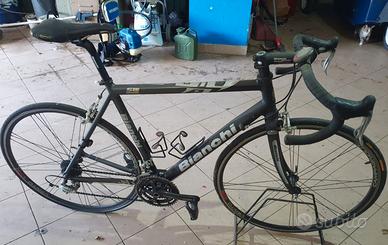 Bici da corsa bianchi con telaio in alluminio e forcella in carbonio cambio campagnolo. Copertoni da cambiare, il resto da pulire e oliare. Vendo per inutilizzo adatto ad una persona di 1,75 di altezza. Ritiro a vostro carico