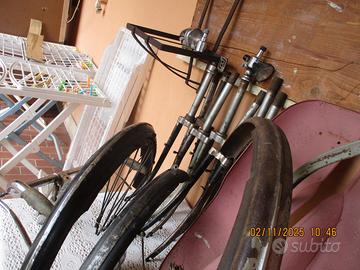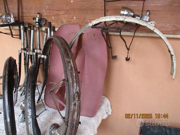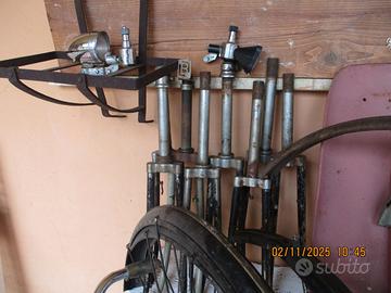 Come si vede ho fatto un casino sulle foto :ma nella mia inserzione ho descritto dettagliatamente gli oggetti che sono 9 forcelle originali BIANCHI modello Zafiro anni 50 per un totale di euro 15, parafanghi Bianchi originali per bici28 con attacco gemma originale e fanali perfettamente funzionanti completi marca Dansi -Mundial- Cev- Aprilia-tutti funzionanti ad euro 15 coppia .- portabagagli anteriori in ferro, molto vecchi . In tutto quello che vedete chiedete pure che vi sarà data una risposta. Prezzi portabagagli euro 25 cadauno-