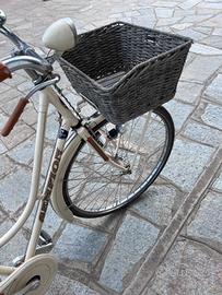vendo bicicletta vintage da città color crema,con cestino anteriore in vimini.portapacchi posteriore e sella molto comoda,in ottime condizioni,pronta all'uso