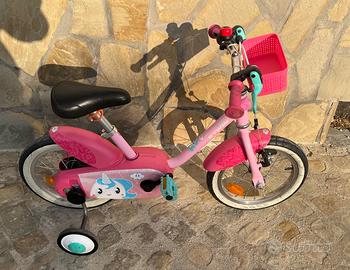 Bicicletta B'TWIN 14" unicorno rosa, ruote da 14, bicicletta in buono stato, adatta per bambini di 2 a 5 anni, cookies di rotelle. Per info contattatemi.