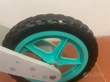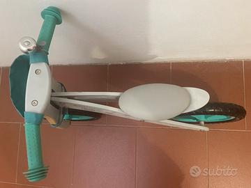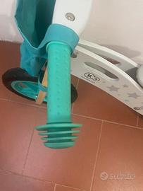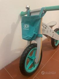 Bicicletta senza pedali (balance bike) in legno e pellle di qualità, robusta ma molto leggera. Marca Kindercraft NUOVA mai utulizzata come si può notare dalle ruote, dalle manopole e dalla sella senza alcun segno di utilizzo.