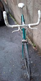Persone alte tra 1.75 e 1.85. Telaio da corsa, manubrio bull horn, cambio posteriore, ruote da 28. Leggera e reattiva. Pneumatici da sostituire.