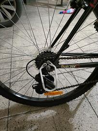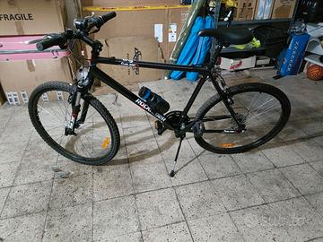 Vendo Mountain Bike Rockrider 5.0 ruote da 26" in ottime condizioni, sempre tenuta con cura e perfettamente funzionante, meccanica in ordine, nessun problema strutturale, luci avanti e dietro, Cambio Shimano, forcella ammortizzata, Freni V-Brake, cavalletto, porta borraccia e borraccia inclusi.
