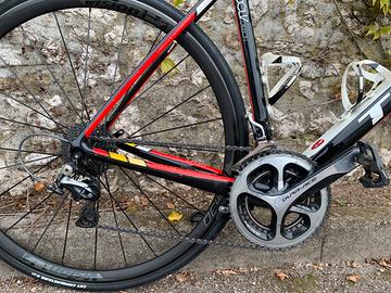 Bicicletta da corsa Trek Madone 7. - Telaio in carbonio OCLV. - Colore bianco, rosso e nero. - Ruote Vision Team 30. - Cambio Shimano Durace - Freni Shimano Durace - Conta pedalata incorporato nel telaio - Tg 56 - Bicicletta super leggera - Normali segni di usura