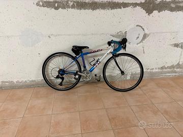 Ideale per avvicinare i bambini al ciclismo . Ottima bici da corsa funzionante e in ottime condizioni di cambio freni e coperture. Piccoli ricambi disponibili inclusi oltre a camera d'aria incluse nel kit. Piccoli segni di usura (graffi) prezzo leggermente trattabile. se abitate nelle regioni di veneto friuli trentino e lombaedia posso consegnare a mano.