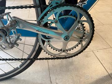 Bici da corsa moser in alluminio poliformato unica nel suo genere . Non presenta nessun punto di saldatura ; il telaio è pezzo unico . Forcellino in carbonio . Cerchi Ambrosio . Cambio Daytona . Bici verniciata a polvere e riassemblata da noto ciclista . Misura ideale per persone 155 cm/ 165 leggerissima . Sella italia con foro che scarica la zona perineale. Pipa manubrio origiane moser . Collarino tubo sella moser . Nastro manubrio silva italia nuovo. Copertoncino michelin e camere d aria entrambe nuovi. Bici utilizzata poco e niente . Non presenta neanche un graffio.