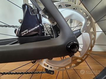 Vendo bici in carbonio, perfetta, praticamente nuova, usata solo tre volte per un totale di 150 km. Completamente originale, compresi gli pneumatici. Causa inutilizzo per problemi fisici.