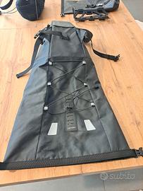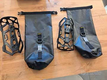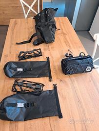 ottimo set di borse per affrontare un viaggio in bikepacking, composto da borsa sottosella 10L, due borse laterali e i loro supporti da 4,5 L, e una frontbag da 2,5 L. Il tutto usato solo per un viaggio di 450 km in agosto.