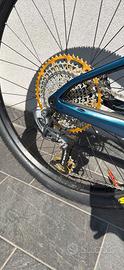 Bmc Fourstroke, accessoriato al top, peso super light. Monta forcella Fox top di gamma 34, nuova 2025. Gruppo Sram x01 axs , catena nuova. Movimento centrale ceramicato ceramicspeed, coated, garantito a vita. Oversize ceramicspeed. Pedali xtr Shimano, ruote dtswisse , freni Level, ( pastiglie appena cambiate), dischi frenanti Shimano 16 Potenziometro Quarq, cambiato in garanzia novembre 2025. Valvole muc off big bore ( nessun problema con lattice che fa tappi da quando le uso) Taglia M Questa mtb è la preferita di Alessio Leo e Thomas Pidcock. Mentre il primo ha sempre potuto vantarsene e dominare le gare xterra e xc, il secondo per motivi contrattuali con Pinarello c’ha vinto un mondiale mtb coprendo le scritte con lo scotch nero.