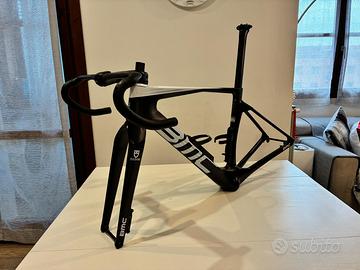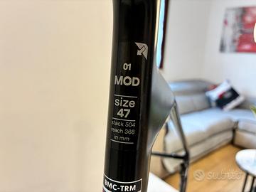 Per le geometrie del telaio consultare il sito BMC. BMC Teammachine R è stato progettato per una razza speciale di ciclisti. Leggero quanto basta per affrontare le salite più impegnative e rigido quanto basta per sopportare gli sprint più frenetici, il Teammachine R è il telaio da bici da corsa perfetto. Il Teammachine R 01 MOD è dotato di -Attacco ICS Aero attacco 110 alluminio -Manubrio separato areo bmc carbon 40cc di BMC -Due portaborracce Aerocore integrati Telaio Taglia 47 SPECIFICHE Telaio Telaio: Teammachine R 01 Premium Carbon with Aerocore Design | ICS Technology, Stealth Cable Routing | Integrated Aerocore Bottle Cages | Stealth Dropout Design | PF86 Bottom Bracket | Flat Mount Disc | 12x142mm Thru-Axle Forcella: Teammachine R 01 Premium Carbon | ICS Technology | Stealth Cable Routing | Stealth Dropout Design | Flat Mount Disc | 12x100mm Thru-Axle Cockpit Piega: ICS Carbon Aero 40cc | Attacco manubrio 110 areo alluminio Reggisella: Teammachine R 01 Premium Carbon Seatpost 10mm Offset Usato solo per pochissimi km e sostituito per cambio progetto, non presenta segni, davvero come nuovo, presente scontrino di garanzia