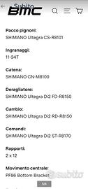 Vendesi Splendida BMC ROADMACHINE 01 FOUR,misura 54,acquistata a Maggio 2025,carbon premium,Shimano Ultegra Di 12v,Ruote carbon crd321,perfetta come nuova,usata pochissimo. Vendesi causa importante malattia.
