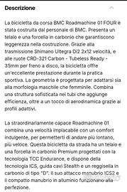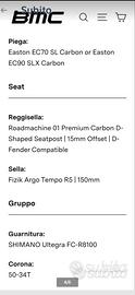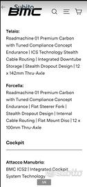 Vendesi Splendida BMC ROADMACHINE 01 FOUR, misura 54,acquistata a Maggio 2025,carbon premium, Shimano Ultegra Di 12v, Ruote carbon crd321, perfetta, come nuova, usata pochissimo, vendesi causa importante malattia.