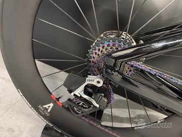 bici pari al nuovo accessoriata al top. vendo con allestimento crono ma fornisco anche tutti gli accessori per Triathlon.
