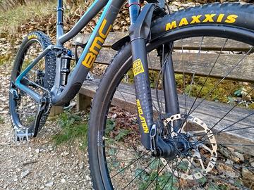 Vendo BMC Speedfox 03 ONE – taglia M Specifiche: Telaio in alluminio Speedfox 03 – Advanced Pivot System Tubazioni: 03 Alloy, Al-13 triple-butted aluminum (F&R) Forcella: Rock Shox Reba SL, 120 mm (recentemente revisionata) Ammortizzatore: Fox Float DPS Performance Evol (120 mm) Trasmissione: 1x11 Guarnitura: RaceFace Aeffect SL 32T Cassetta: Shimano SLX 11-46T Catena: KMC X-11EL-1 Cambio: Shimano SLX Shadow Plus Comandi: Shimano SLX Freni: Shimano SLX (180/180 mm) Manubrio: BMC MRB 03, 760 mm Attacco: BMC AMSM 02 Reggisella: RaceFace Aeffect Dropper 125/150 mm Sella: WTB Volt Comp Mozzi: Shimano SLX Cerchi: Alex MD30 Pneumatici: Maxxis Forekaster 29x2.20 Condizioni: Bici tenuta sempre in garage, mai lasciata all’aperto. Manutenzione regolare e sempre curata con attenzione. Forcella recentemente revisionata, perfetta per l’uso. Utilizzata con cura, pronta all’uso senza lavori da fare. Consegna disponibile previo accordo. Ancona. Perugia. Per il prezzo trattativa in privato