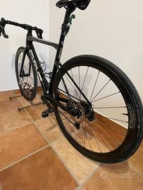 Vendo mbc team machine montata ultegra 12 velocita 52-36 e cassetta 11-30. Con ruote duke carbon . Peso bici 7.2 kg con pedali .taglia 51 per altezza 168-178