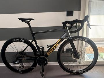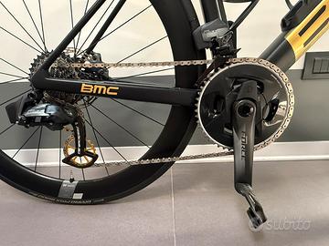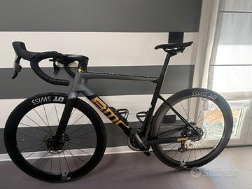 Vendo Bmc TEAMMACHINE SLR01 Taglia 54 - fine 2021 - unica nel suo genere, completamente nuova, neanche un graffio, km percorsi circa 2.000 - tutta in carbonio - freni a disco - monta sram force axs 12v - anteriore 48/35 - posteriore 33/12 misuratore di potenza integrato - ceramicspeed di colore oro - cerchi nuovi DT SWISS in carbonio da 50” ( mai uilizzati - presente fattura e garanzia di acquisto 1.600 euro ).