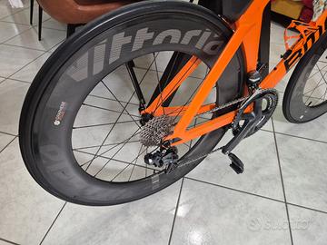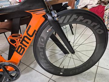 bici bmc triathlon tg.s perfetta ruote slto profilo Vittoria Qurano 84 con tubolari tufo 24mm nuovi pattini freno swiss stop nuove sella san marco shortfit fx carbon manubrio regolabile in carbonio deda espresso pedali look carbon guarnitura 53/39 pedivelle 165mm.Valuto scambio