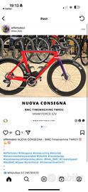 Vendo splendida BMC Timemachine TMR01, montata SRAM Force 12 velocità. Una bici aero di altissima gamma, perfetta per chi cerca prestazioni e velocità senza compromessi.