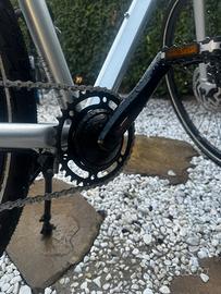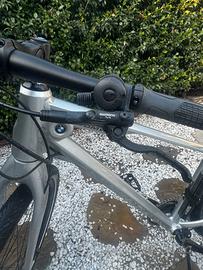 bicicletta di alta gamma che unisce design elegante e tecnologia avanzata, ideale per chi cerca un mezzo di trasporto urbano e per escursioni. Con componenti di qualità come il cambio Shimano Deore XT e freni a disco idraulici, offre comfort e prestazioni eccellenti.