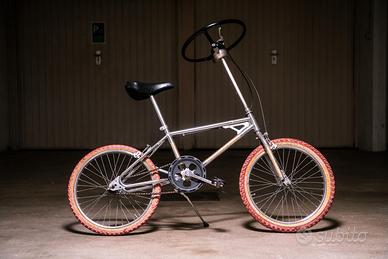 Vendo più unica che rara BMX con volante. Nata dall'unione di una bmx vintage e un volante di una reanault 4 . Usata qualche volta a feste e carnevali non passa di certo inosservata. Le gomme sono da cambiare.