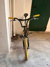 bmx nero opaco con gomme e accessori gialli con pedane posteriori