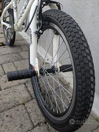 Freestyle con ruote da 20 pollici, un modello versatile progettato per acrobazie e uso su strada, acquistata nel 2015. Presenta un telaio robusto, in acciaio, con una sella regolabile e pneumatici tassellati adatti a varie superfici. Modello : Acciaio Hi-Ten (High Tensile):Molto comune nei modelli entry-level o per ragazzi. È estremamente resistente agli urti ma più pesante rispetto ad altri materiali. Modello ibrido, sia per ragazzi che per adulti. Tutta la bici presenta ancora pezzi originali, mai cambiati prima. Entrambe le camere d'aria sono state sostituite poiché forate, adesso sono nuove. Copertoni in buone condizioni, mai cambiati. Freni appena sistemati. Peg(pedalini) : Sono fatti per reggere il peso di una persona (o parte di esso) durante acrobazie e grind, ma non sono omologati per trasportare un secondo passeggero in modo sicuro. La bicicletta presenta qualche graffio nel telaio ma basterebbe semplicemente un tocco di vernice per farla tornare come nuova. impugnature in gomma sono in perfette condizioni. Peso BMX: 12 KG Altezza: 100 cm Lunghezza: 130 cm Larghezza: 70cm (dall'estremità destra all'estremità sinistra del manubrio). Vendita solamente di persona. Per qualsiasi informazione non esitate a contattarmi!