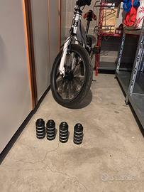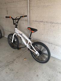 BMX di colorazione bianco-arancio in buone condizioni, presenta solo un guasto con la leva del freno anteriore (leva di sinistra) e gli serve un solo gonfiaggio gomme. incluse nel prezzo ci sono anche 4 staffe montabili ai lati dei delle ruote