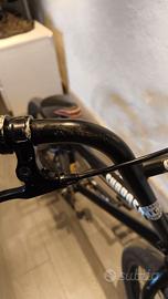 acquistata usata nel 2023 è purtroppo ferma da un anno a causa di impedimenti fisici. la bmx è tenuta al chiuso e nel complesso è in buone condizioni. qualche segno superficiale di ruggine sul manubrio e uno sulla forcella che però non ne intaccano l'integrità.