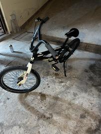 La bici e messa bene ha il copertone di dietro usato pochissimo quello di davanti è messo pure bene non ha mai subito bucate ho anche le pedaline di dietro solo che ha un freno solo cioe quello di dietro con una modifica cioe prima aveva il freno a giroscopio cio che permetteva di fare girare il manubrio a 360gradi pero mi si era arrugginito visto che avendo il giroscopio si deve spesso lubrificare adesso ce il freno a filo diretto e frene perfettamente e ha pastiglie nuove ,ho cambiato catena e adesso funziona tutto perfettamente. Il prezzo è trattabile