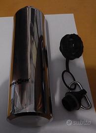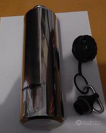 Borraccia a bottiglia marca Hydrolin stell inox dotata di tappo su vite e tappo sport completa di moschettone di fissaggio: misure altezza 26 cm circa circonferenza 73 mm, indicato per vari sport, ciclismo, trekking, alpinismo ecc, ecc, oggetto nuovo non usato senza cartellino. Contenuto 0,1( L. (Hydrolin Steel INOX BRUNER OUTDOOR TESTED)