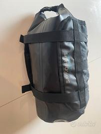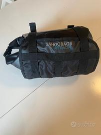 Vendo borsa da manubrio per bikepacking marca Sahoo, linea Attack, usata ma in ottime condizioni. Perfetta per viaggi in bici, gravel o MTB. Il sistema è composto da Imbracatura (Holster), si fissa saldamente al manubrio/sterzo tramite cinghie regolabili. Permette di agganciare e sganciare rapidamente il carico senza dover smontare tutto il supporto; Sacca stagna (Dry Bag), sacca interna nera totalmente impermeabile con chiusura a rullo (roll-top), ideale per tenere vestiti o sacco a pelo all'asciutto anche sotto la pioggia battente. Capacità: circa 7-10 litri (regolabile in base a quanto si arrotola la sacca). Materiale: Nylon TPU ad alta resistenza, antistrappo e facile da pulire. Stabilità: Cinghie di compressione per ridurre le oscillazioni durante la pedalata. Compatibilità: Si monta facilmente su manubri drop (gravel) o flat (MTB). La borsa è stata utilizzata ma non presenta tagli o segni di usura eccessiva. Le fibbie e i velcri sono perfettamente funzionanti. #bikepacking #gravel #mtb #sahoo #borsebici #viaggioinbici #handlebarbag #accessoribici