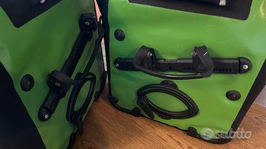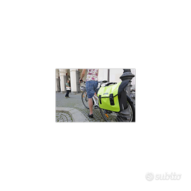 VENDO N. 1 BORSA VALUTO SCAMBIO CON BORSA DI PARI LIVELLO MA VOLUME SUPERIORE Cartella-Bike con sistema QL3, può essere fissato sul lato sinistro o destro del portapacchi, liberando la parte posteriore della borsa da ganci fissi (virtualmente fastidiosi nel trasporto a spalla). Downtown QL3 garantisce il trasporto sicuro di documenti e laptop fino 15.4". Si aggancia e si sgancia rapidamente, con una sola mano. Manico per il trasporto come cartella a mano o a spalla (applicando tracolla non in dotazione) Innovativo sistema di aggancio Quick-Lock QL3 (Eurobike Award 2010) montabile su qualunque portapacchi standard con tubazioni di diametro fino a 10 mm Altezza e angolazione della borsa individualmente regolabili Paraspigoli e piedini protettivi 2 ampi catarifrangenti 3M e logo Ortlieb riflettente per un'ottimale visibilità al buio, o in condizioni di cattiva illuminazione DIMENSIONI Altezza: 36 cm Larghezza. 36 cm Profondità: 14 cm Volume: 18 Litri Peso: 1550 gr COLORE: Lime