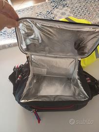 Borsa termica utile per uscite in bici con pranzo a sacco. Fornita di attacchi al manubrio e di diverse tasche, tra cui quella per cellulare e una tasca trasparente sopra l apertura utile per piantine geografiche o altro . Molto espandibile e comoda