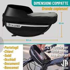 borsa telaio bici nuova con un doppio strato impermeabile e riflettente per massima sicurezza e visibilità notturna, Porta il tuo telefono sempre al sicuro.
