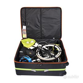 Il manico completamente telescopico e le ruote in stile pattini a rotelle la rendono particolarmente piacevole da usare come valigia per aerei, sia che tu trasporti una bici o meno. Questa custodia offre un'ottima protezione alla tua bici e non siamo a conoscenza di alcun caso in cui una bici sia stata danneggiata mentre era imballata al suo interno.