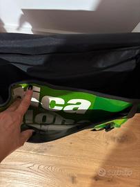 È impermeabile, dotata di due ali interne per proteggere ulteriormente il contenuto. Viene venduta con l’apposito aggancio specifico per biciclette Brompton. Modello Diagonal Mar.