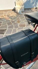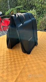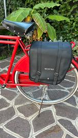 Borsa doppia “Brinke” da bicicletta per il portapacchi posteriore In robusta ecopelle color nero, nuova ancora nella confezione originale