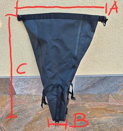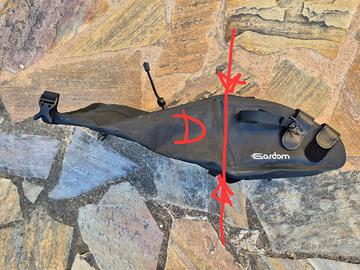Borsa Gardom per sottosella bici, misure (cm.) A=34 / B=8 / C=60 / D=17, con fibbie/lacci di chiusura e aggancio sottosella, impermeabile, coda pieghevole per MTB e bici da strada, materiale similpelle, resistente, ideale per ciclismo su distanze medio/lunghe e cicloturismo NUOVA !!! (mai usata)