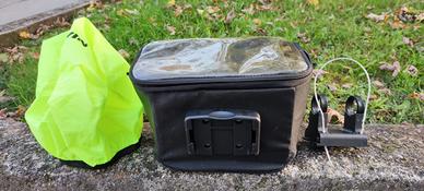 borsa per manubrio bici decathlon completa di attacco rapido e copertura pioggia e possibilità di inserire mappe per cicloturismo usata molto poco non spedisco