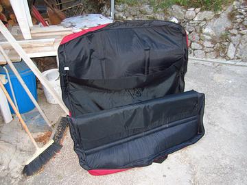 Pratica e bene imbottita borsa per trasporto bici marca Look acquistata nel 1992 e per niente usata. Molto comoda con tre scomparti interni: il centrale ospita la bicicletta ed i laterali le due ruote.