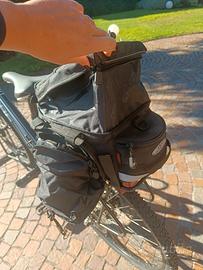 borsa portapacchi posteriore bici usata pochissimo. espandibile, dotata di tracolla e telo per la pioggia. 3 disponibili.