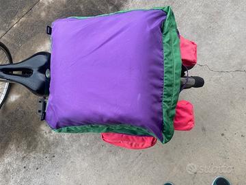 Borse posteriori per bicicletta marca Ferrino, composta da: un'ampia borsa centrale, due borse laterali per ciascun lato e due portaborracce posteriori.