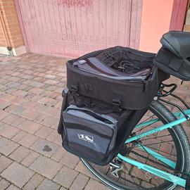 Set di borse da bici M-Wave per portapacchi posteriore usate 2 volte e in ottime condizioni. 2 laterali e una superiore che diventa valigetta o zainetto, ideali per trasportare i tuoi effetti personali durante le uscite. Impermeabili ma dotate anche di ulteriore copertura impermeabile.