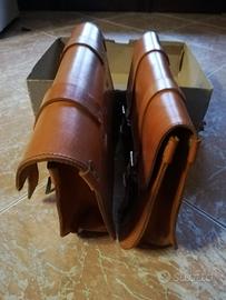Per inutilizzo vendo queste due borse laterali per bicicletta da uomo/donna o ciclomotore in vero cuoio fatte a mano da artigiano uniche sono nuove mai utilizzate complete di cinghie misure lunghezza 35 centimetri, altezza 25 centimetri, larghezza completamente aperta 10 centimetri per il fissaggio Davvero molto belle posso spedire o ritiro a mano per il pagamento bonifico bancario oppure PayPal se l'annuncio è ancora visibile significa che è disponibile. Nb. Il prezzo non è trattabile siccome che le avevo pagate 100 euro
