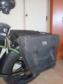 borse/valigetta per portapacchi universale con zip ambolati esterna e ampi spazi interi,agganci per portapacchi in velcro, borse esternamente rigide sennò rimuovendo i lati rigidi tramite scomparto apposito diventano borse morbide.