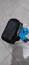 Borsello per cellulare e portaoggetti con cerniera va agganciato al telaio con cavo per le cuffie